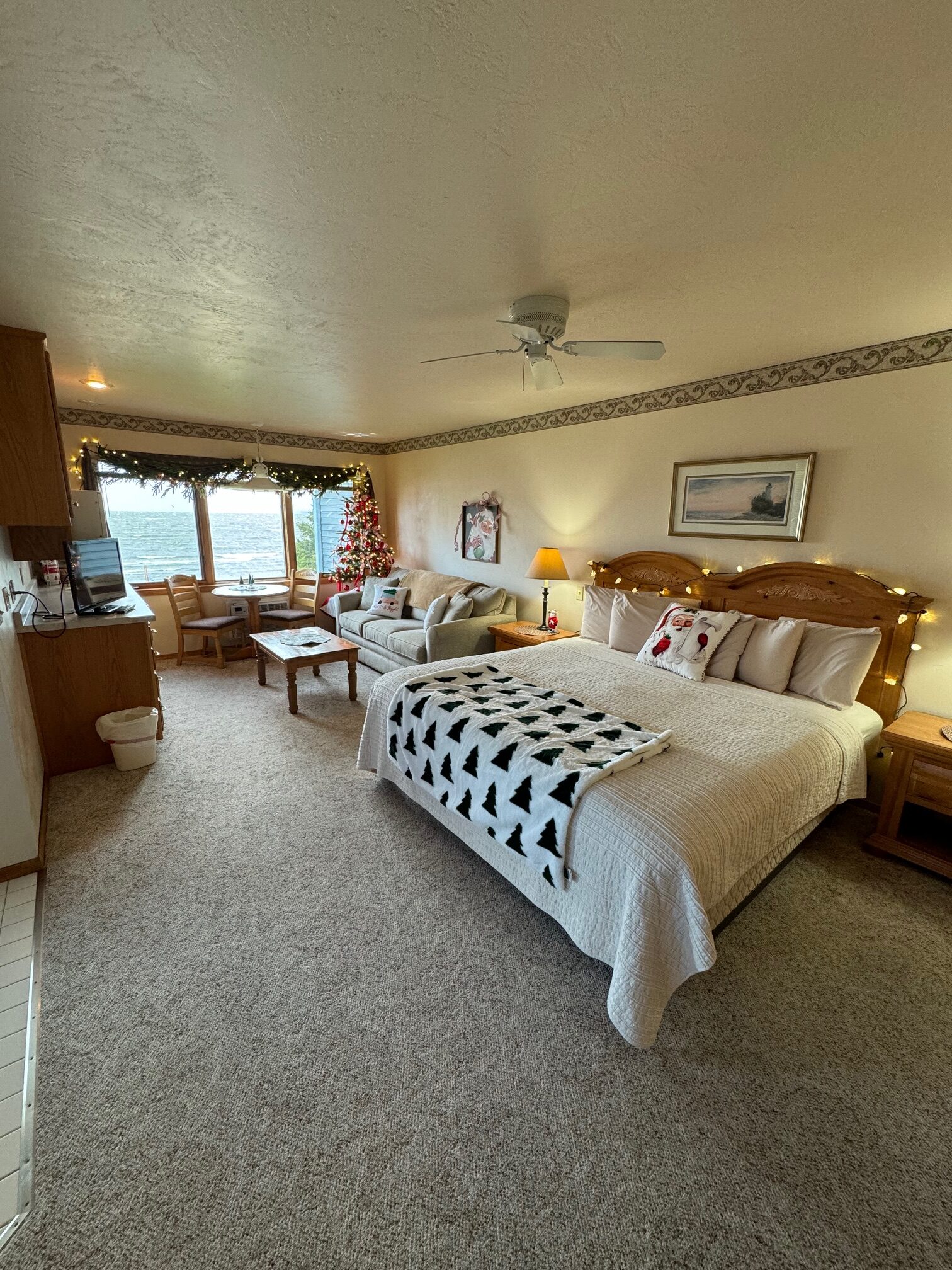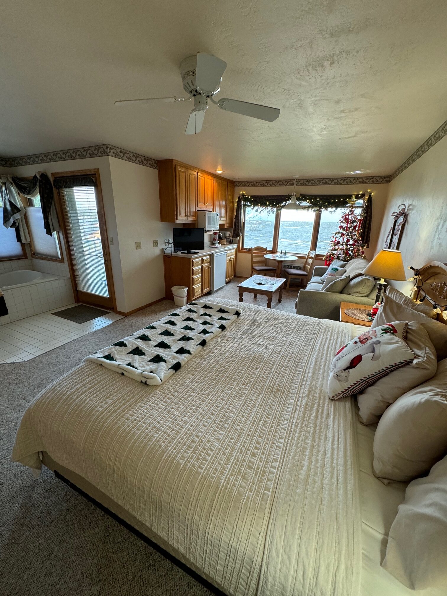 King Bed, Pull out sofa, Bar Kitchenette, Whirlpool Tub, Bathroom w/Oversize shower