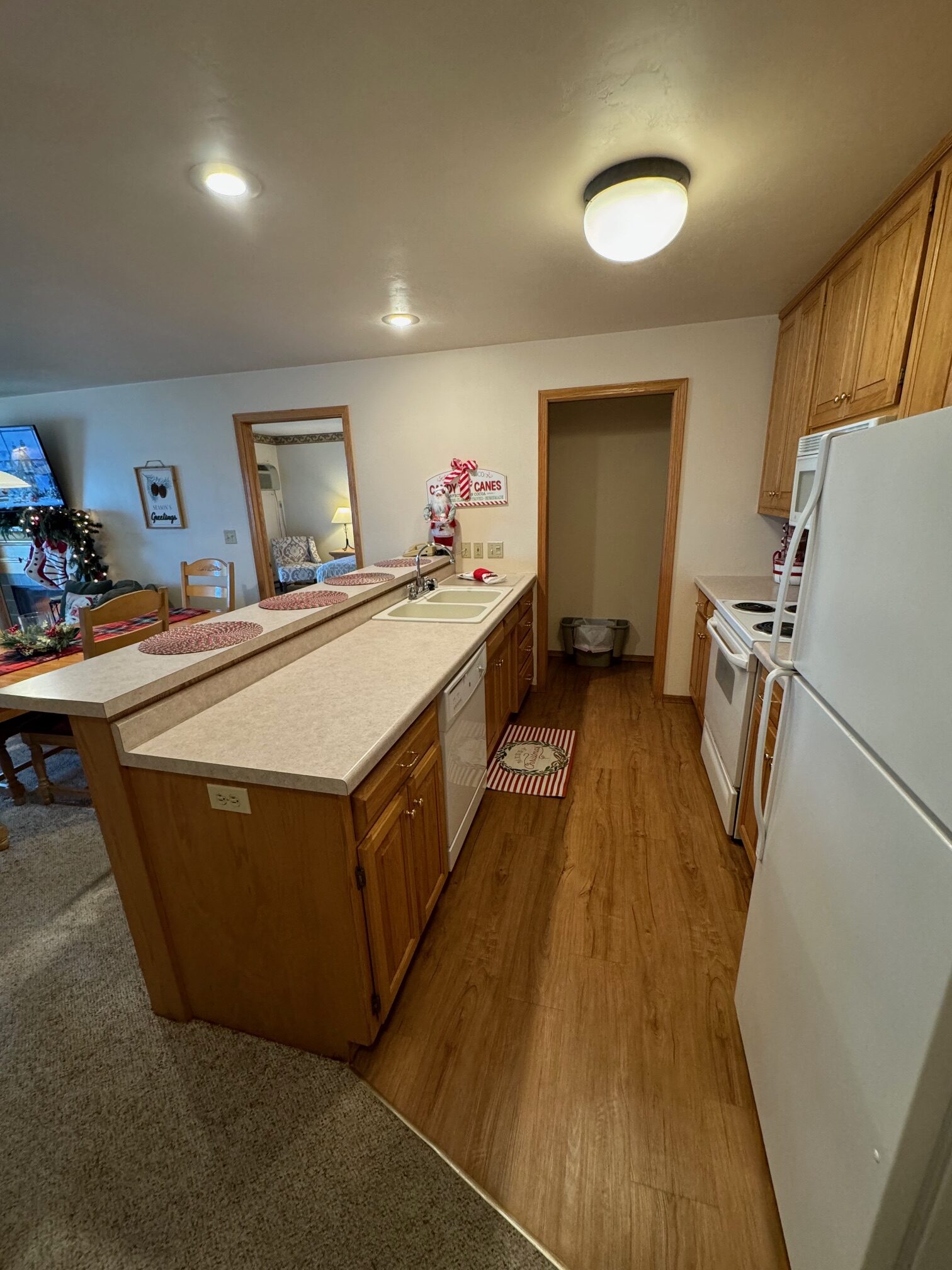 Full Kitchen, Living room, Gas fireplace, Two bedrooms, King beds, Whirlpool tub OR large walk-in shower, Tub/shower combo, Patio or Balcony
